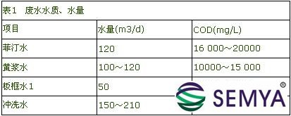 生產(chǎn)廢水主要來源于浸泡、胚芽分離、纖維洗滌和脫水等工序,其主要成分為淀粉、糖類、蛋白質、纖維素等有機物質和氮、磷等無機物,各種廢水水質、水量見表1。