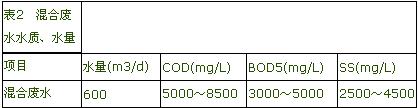 廢水經(jīng)廠內地下管網(wǎng)匯集到廢水處理站,混合廢水的水質、水量見表2。
